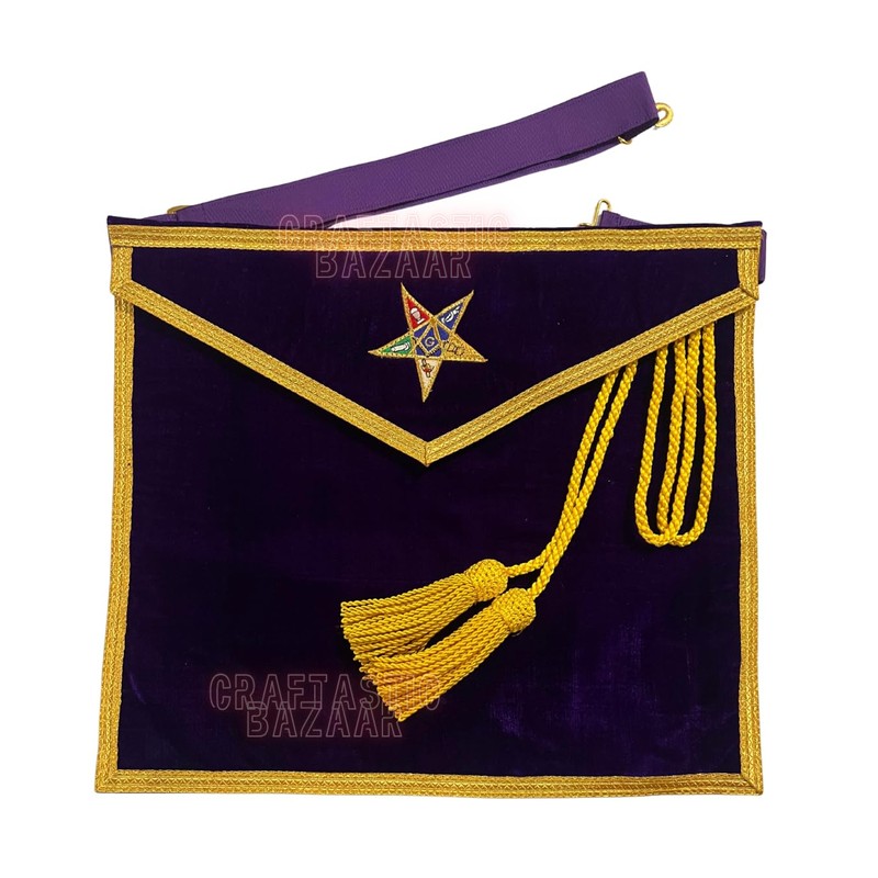 Order of the Eastern Star Regalia set OES Apron, Collar & Gloves Velvet with Gold Trim & Embroidered Star Emblem FREEMASONS