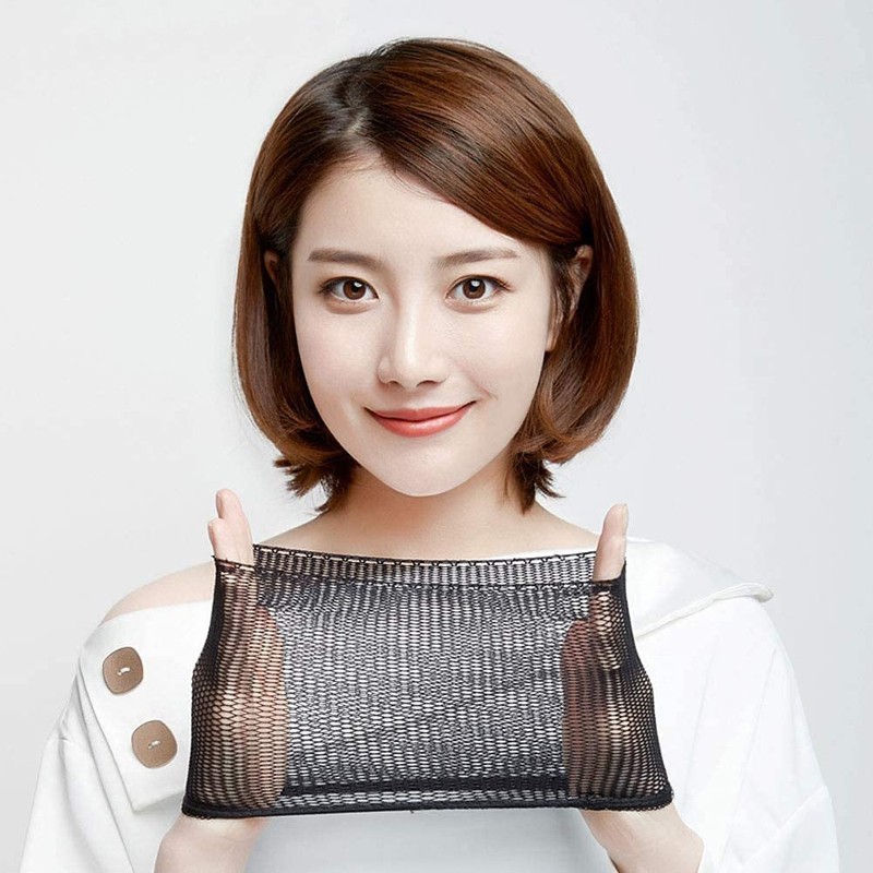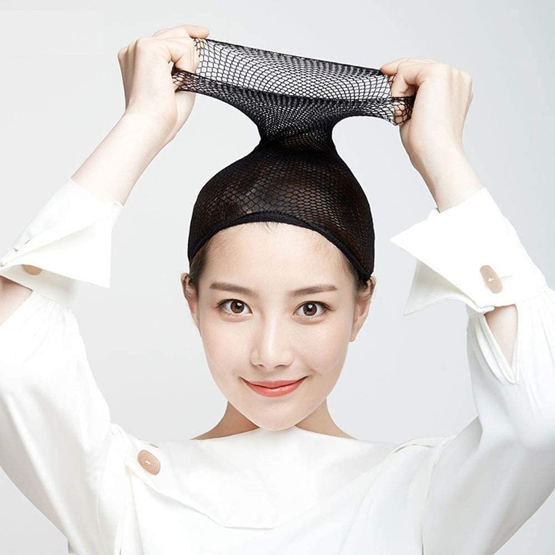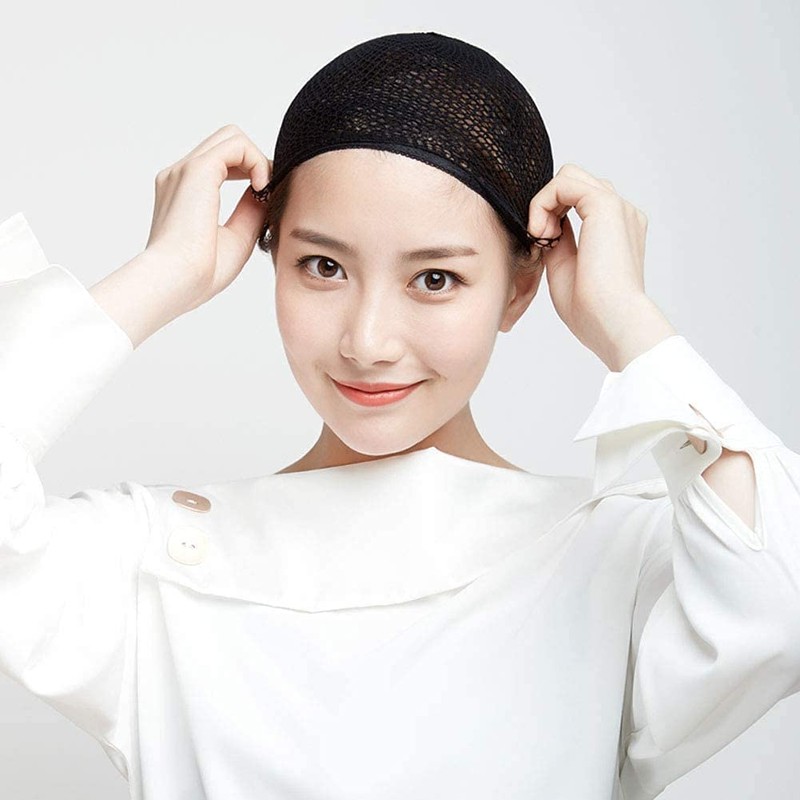 - 1. Unfold the wig net, stretch the elastic tightly, then put it on and slide it through your neck