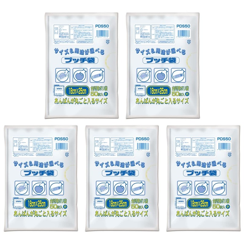 Ordi PDS50 Kitchen Plastic Bags, Transparent, Small, 50 Sheets x 5 Pieces Set, Width 7.1 x Height 9.8 inches (18 x 25 cm), Thickness 0.00008 inches (0.02 mm), Food Storage Bag, Petit Bag