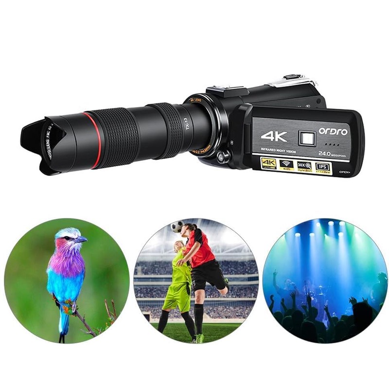 ORDRO AC3 4K Video Camera Camcorder with 12X Zoom Telescope, 1080P 60FPS WiFi Recorder for YouTube Vlogging, IR Night Vision Camera, 3.1'' IPS Infrared Camera Ghost Hunting Camera,32GB Card