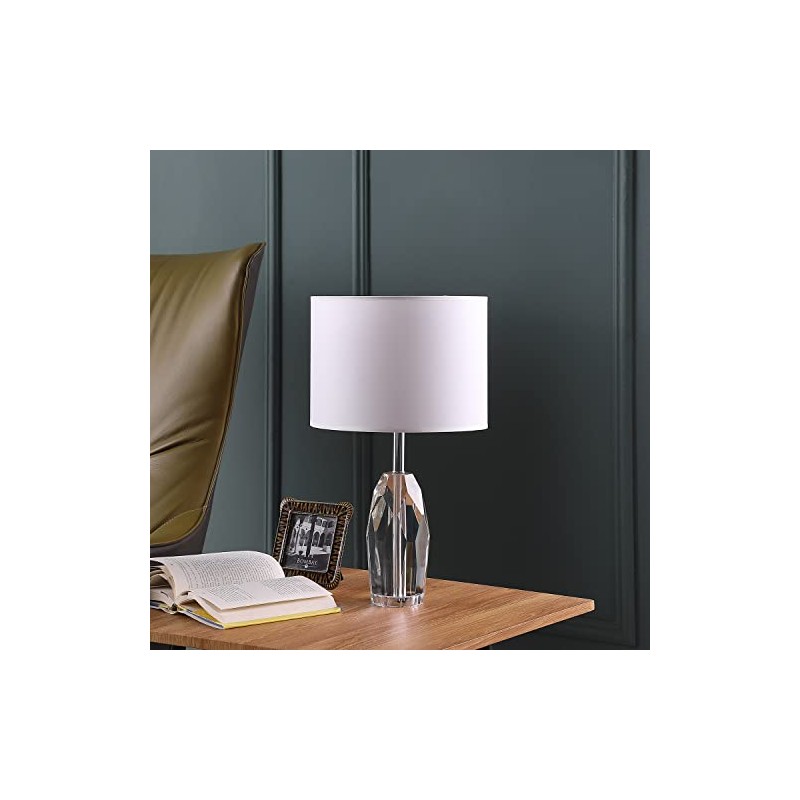 - Uno Fitter White Cotton/Linen Drum Shade measures 11"L x 11"W x 8"H, Requires a 120v 100 W max. Type A ( E26) Incandescent, CFL or LED Bulb Compatile; Color Chrome Silver; Material 100% Imported Solid Crystal, Polished Chrome Silver Metal; Product Dimensions(L x D x H) 11" x 11" x 19"; Product Weight (Lb) 7; Country Of Origin China