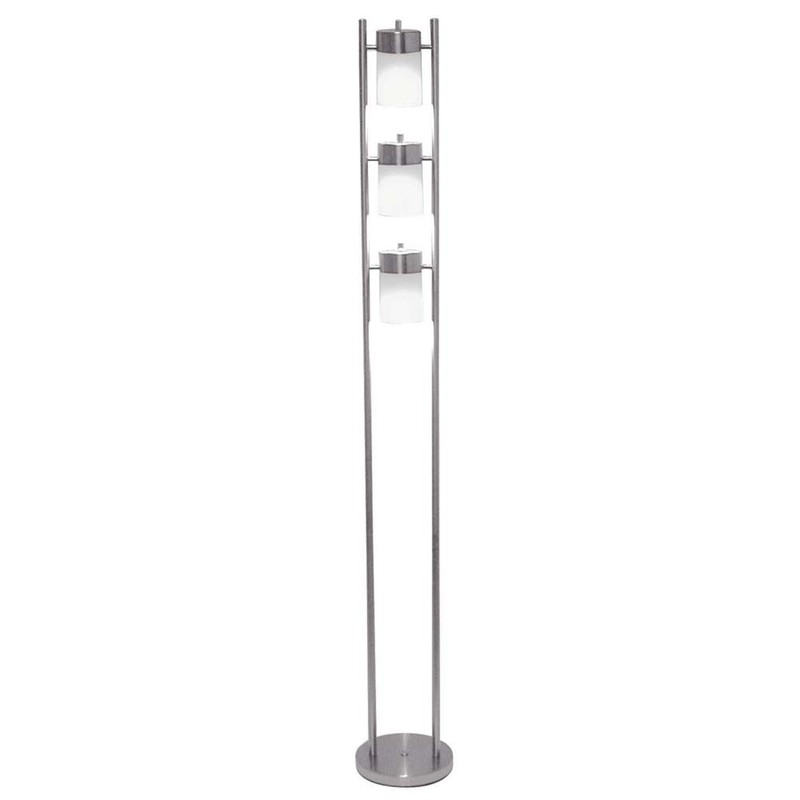 - A true showpiece this unique lamp balances three adjustable heads within a pair of sleek poles