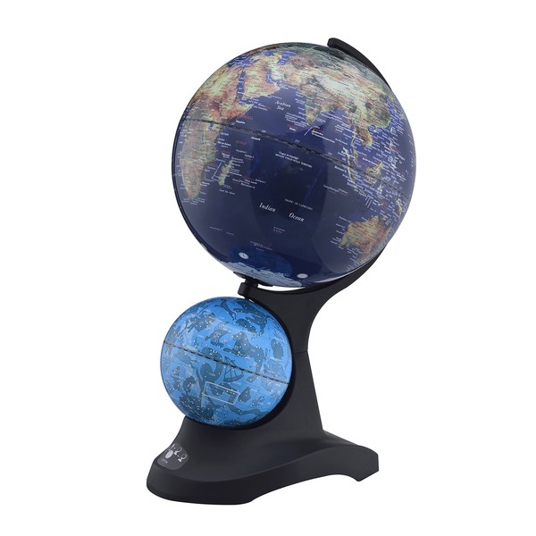- A colorful, hand-applied 9" political map globe and a 5" celestial constellations globe covers this Dual Globe on an acrylic meridian base with a geographic map