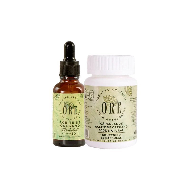 Título: ORE Kit Aceite de Orégano 80% Carvacrol | Gotero 30 ml + Cápsulas 65 pzas, Orgánico Silvestre, Suplemento Natural