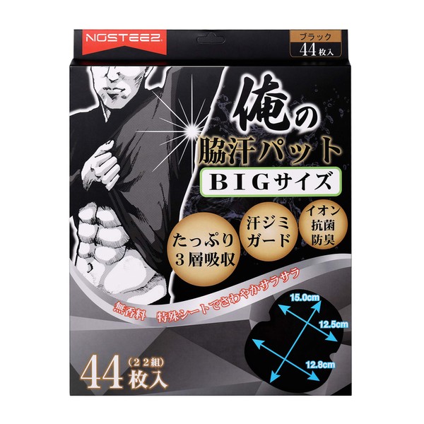 Ore Men's Underarm Sweat Pads, Underarm Pads, Big Size, 44 Pieces, Black