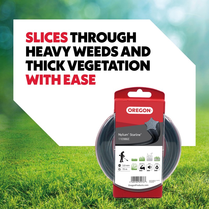 Oregon 110986E Nylium Strimmer Line with Star-Shaped Cross-Section, 3.0 mm, 15 Metres