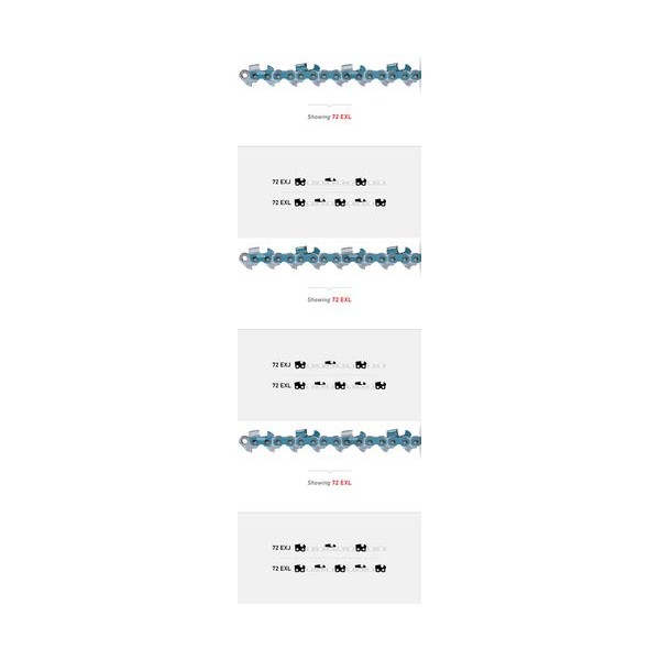 Description Oregon 72EXL has a reshaped cutter and proprietary grind technology for superior performancesharpness and consistency (replaces 72LGX). This low-vibrationfull chisel cutter chain is designed to maximize every cut with less effort.