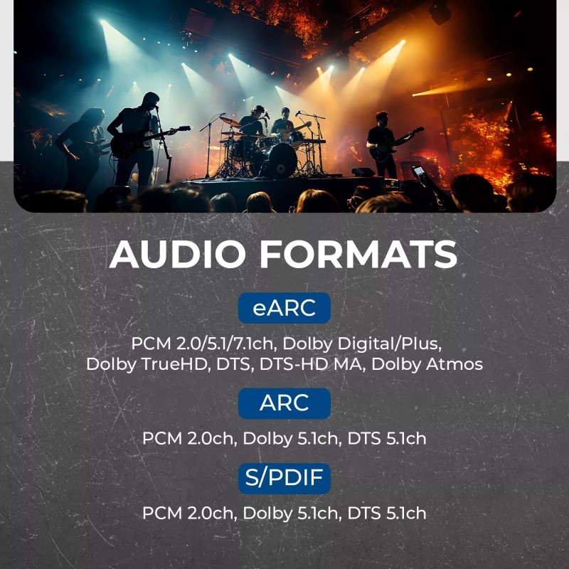 - • eARC: PCM 2.0/5.1/7.1ch, Dolby Digital/Plus, Dolby TrueHD,