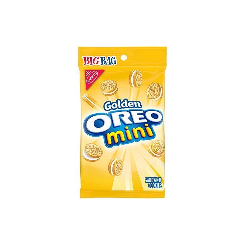Golden Oreo Minis in individually wrapped snack bags pack all of Oreo's flavor into a tiny cookie perfect for popping one-by-one, enjoying by the handful, or even topping your favorite dessert.