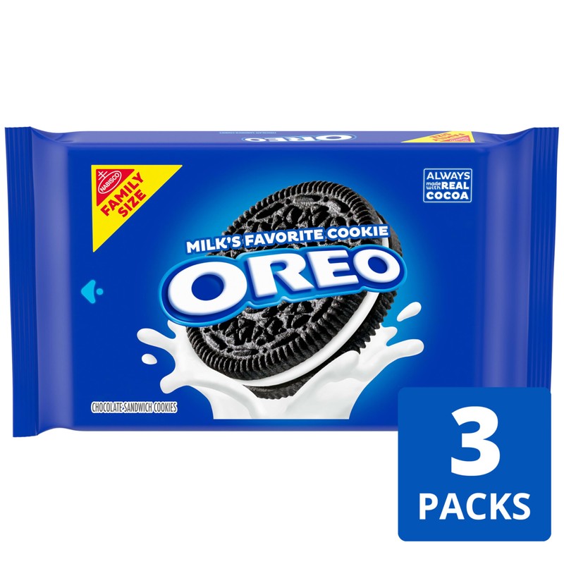 - Three family size packages of OREO Chocolate Sandwich Cookies (packaging may vary)