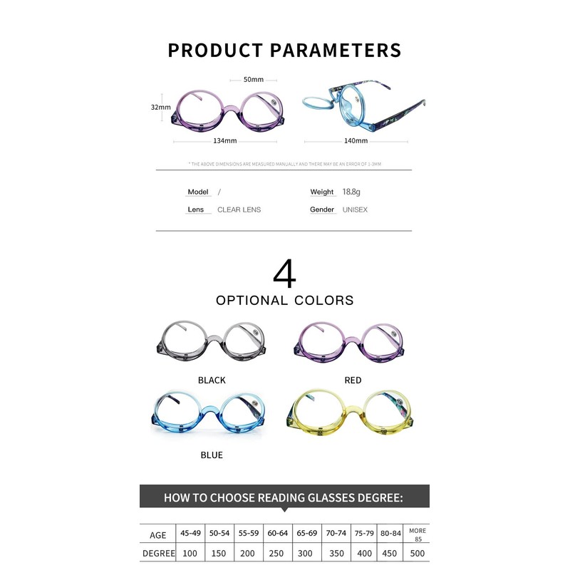 - Its two lenses can be flipped up and down, suitable for makeup and reading newspaper books and using computers, very convenient existence.