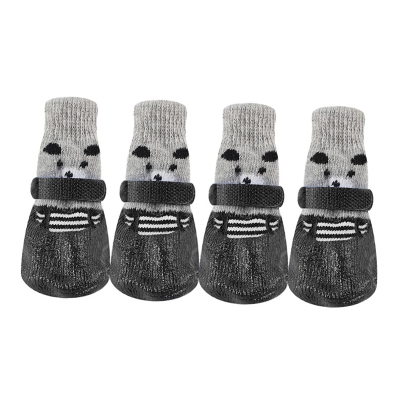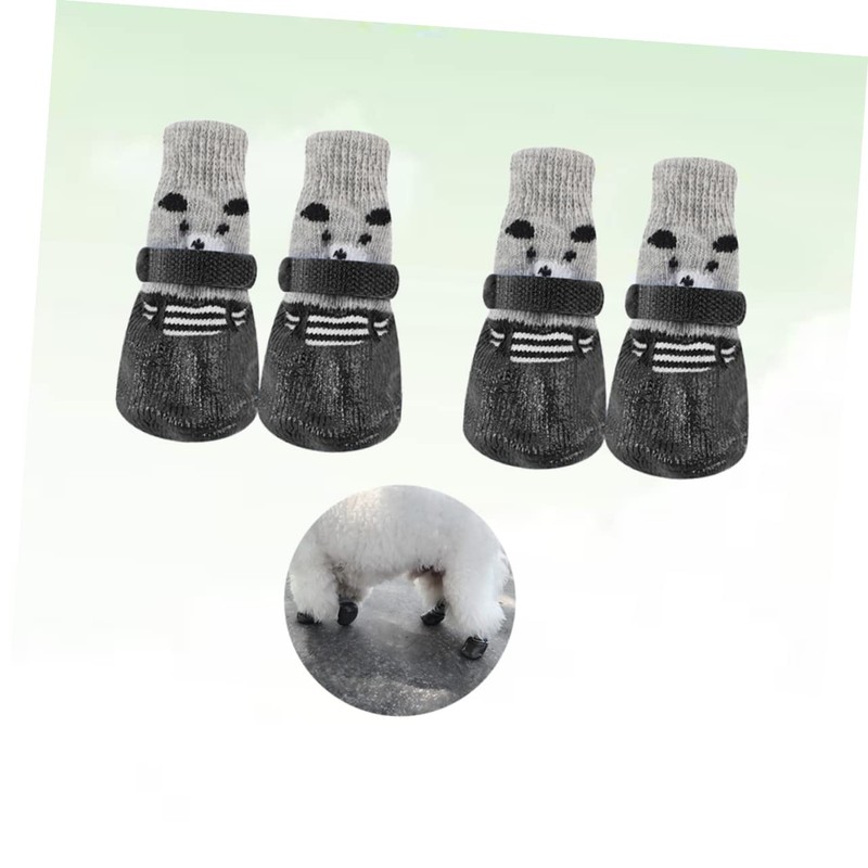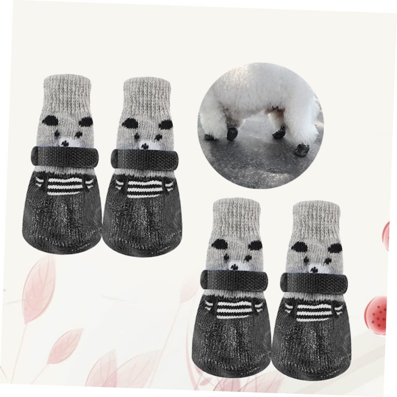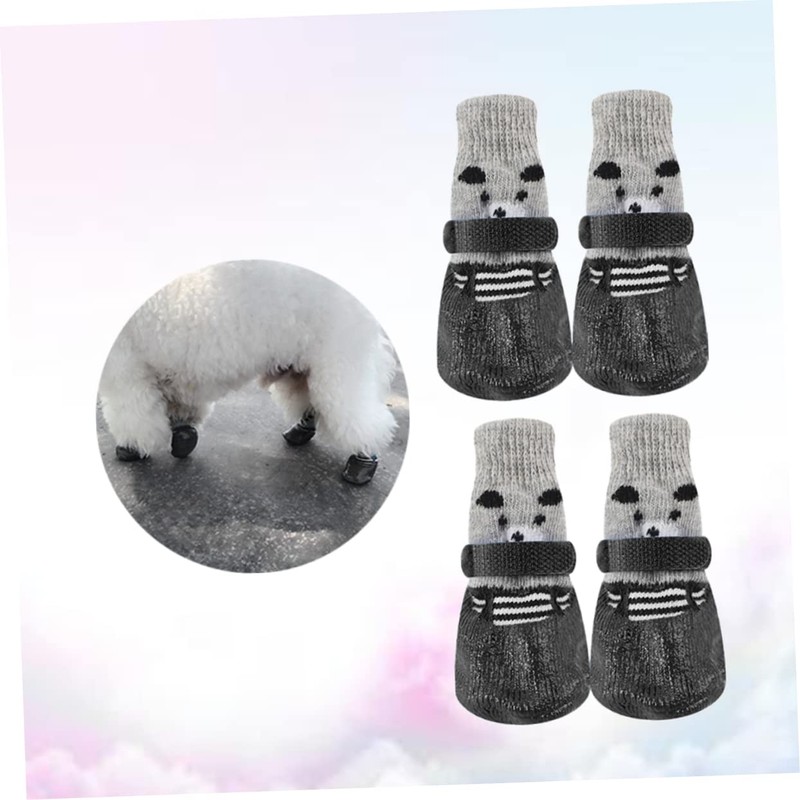 dog socks for small dogs Easy to carry and use, keep pet paws clean and thus allowing it to climb up you.water boots This item is a pack of 4pcs pet socks, which are made of cotton, with cartoon pattern for safe use.breathable dog shoes Protect your pets from soiled feet, also work great against cold, snow, ice, salt
