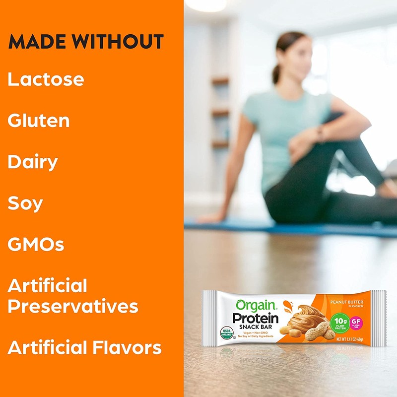 - Includes 12 Orgain organic peanut butter plant based protein bars