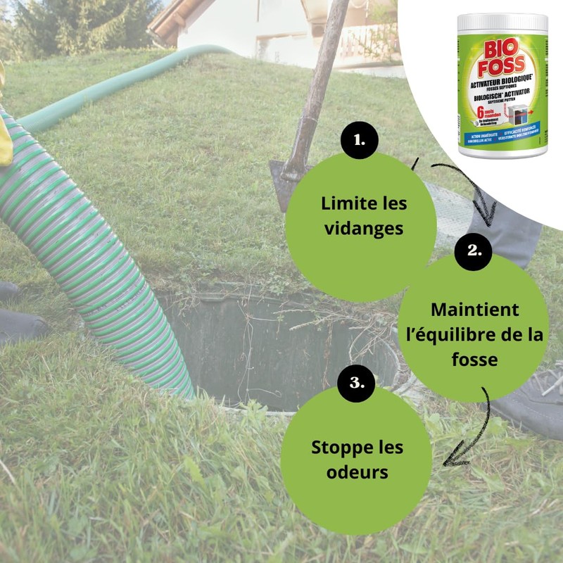 - Prevents blockages and odours, maintains the balance of the pits, especially with frequent use of chemicals such as toilet gel, chemical drain cleaners