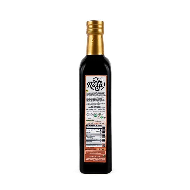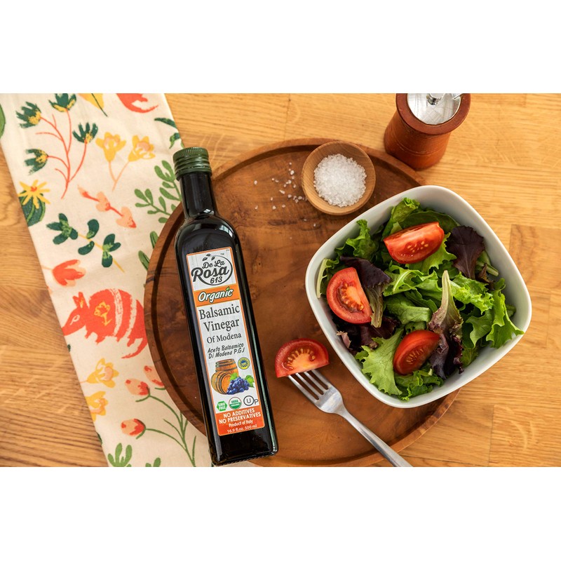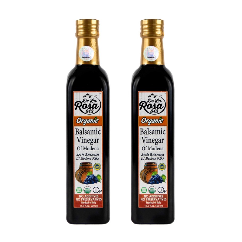 ORGANIC Balsamic Vinegar (2-Pack) - De La Rosa 16.9oz - Barrel Aged in Oak and Chestnut | Vegan, Gluten-Free & Kosher | Great for salads, dressing and more!