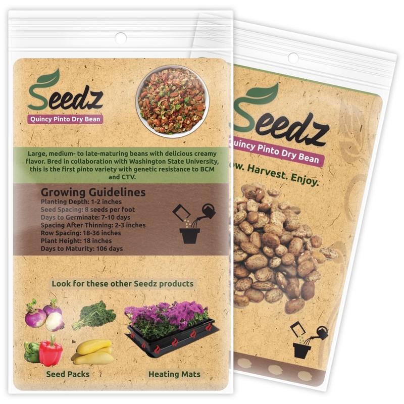 The Seedz Quincy Pinto Dry Bean is a large medium- to late-maturing bean with a delicious creamy flavor. This is the first pinto variety with genetic resistance to BCM and CTV. A high-yielding warm-season annual.