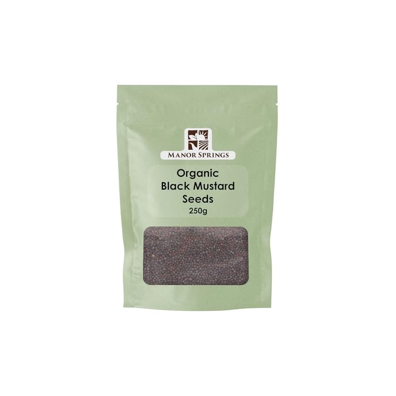 - Manor Springs Organic Black Mustard seeds are a classic pairing for hot and cold meats, fish, Indian specialties such as curries, dals and chutneys, and a wide range of vegetable dishes.