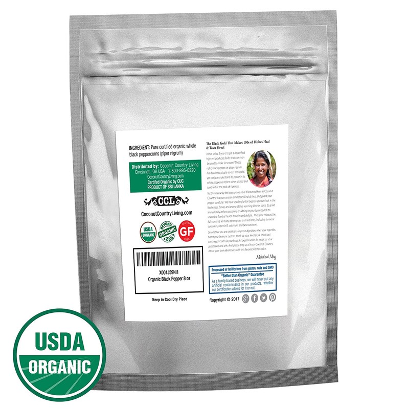 - SAVOR THE PREMIUM QUALITY OF CEYLON: CCL’s USDA pure organic certified black pepper has been hand-picked fresh at the height of ripeness for maximum savor and taste from the exotic island that started the craze for the spice trade so you can enjoy all of the health benefits that come from this proven spice locked in mylar foil bags.