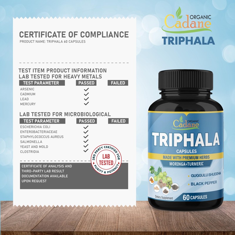 - High Potency Complex: Cadane Organic Triphala Extract Capsules, a perfect combination of multi-premium ingredients with an exceptionally strong formula.