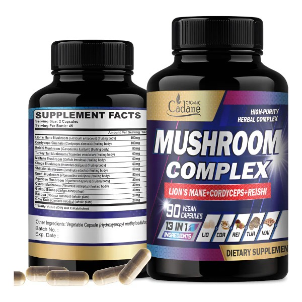 Organic Cadane Suplemento De Hongos 13 En 1 90 Cápsulas