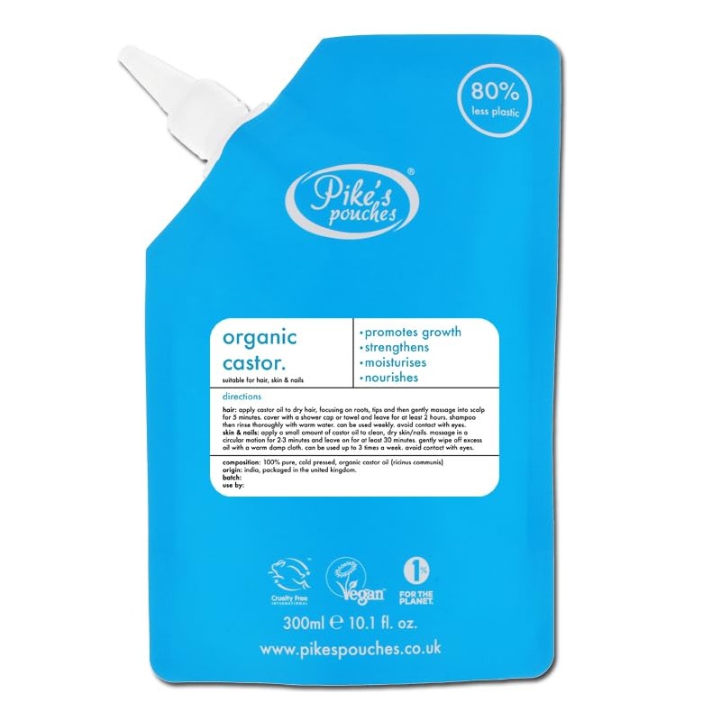 Organic Castor Oil Cold Pressed Hexane Free 300ml – For Hair Growth, Eyelashes, Eyebrows, Skin, Face, Body, Beard & Liver Pack Compress Wrap | 100% Pure, Natural, Golden Caster Oil UK | Pikes Pouches
