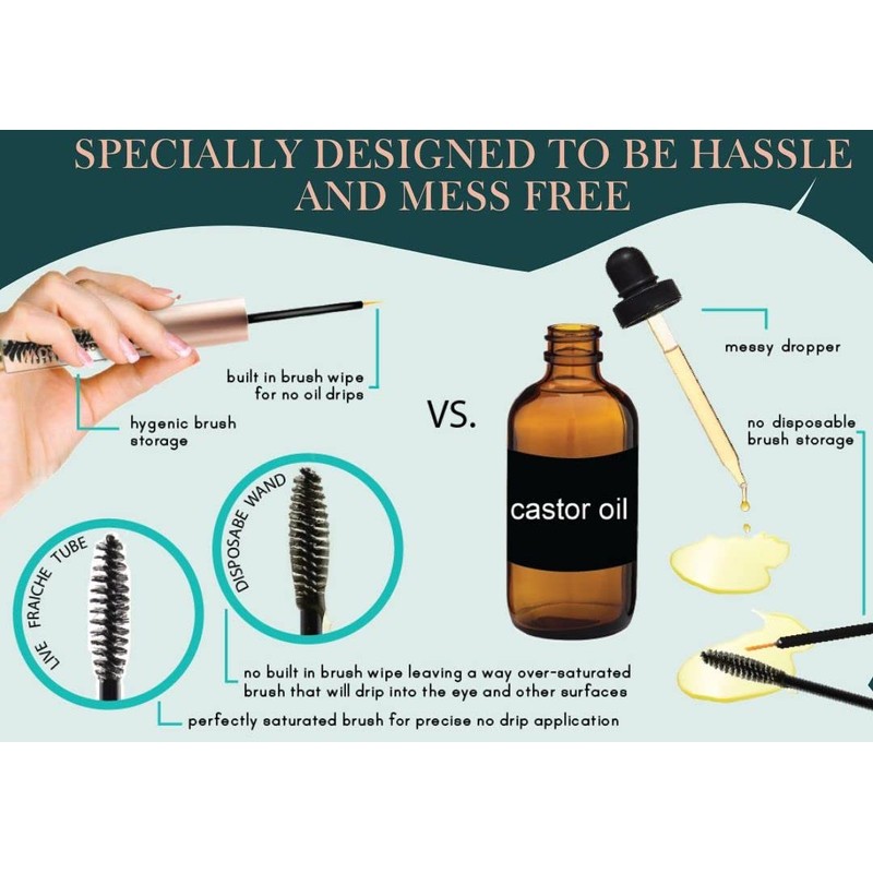 Effortless Application - No more wasting precious time on cleaning up drips or storing sticky brushes! Our lash serum tube is thoughtfully designed to be quick, convenient, and mess-free. Perfect for both newcomers to castor oil and those seeking a hassle-free experience. The dual-ended wand and tubes ensure precise, even, and hygienic application directly to hair follicles, maximizing growth potential.