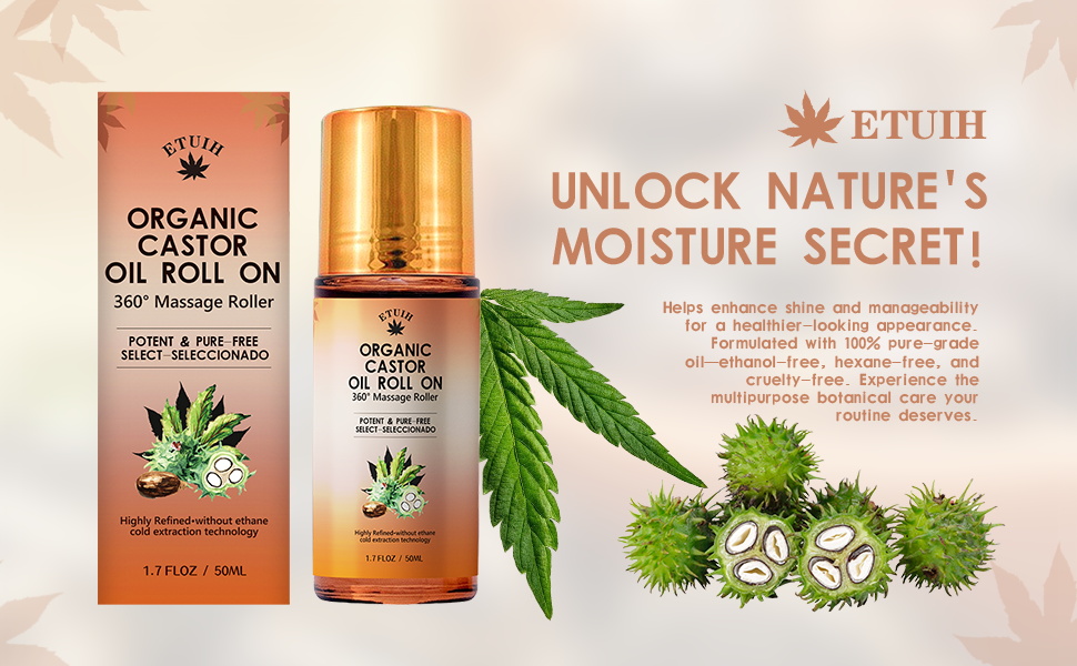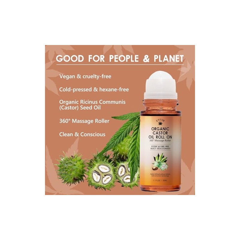 - 【Organic Castor Oil Roll On】Cold-pressed, hexane-free oil for healthy skin, hair & lashes.