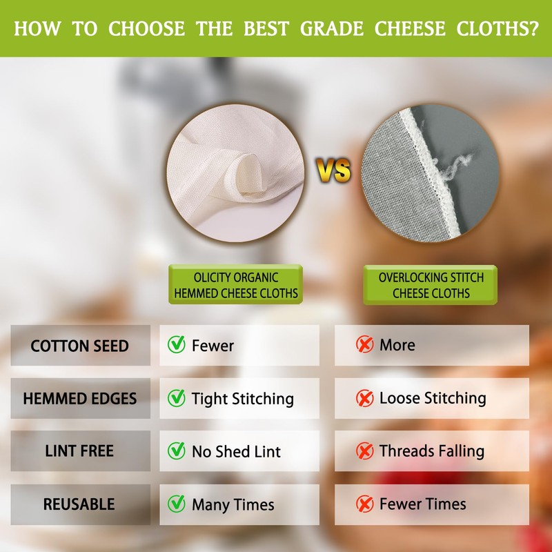 Organic Cheese Cloths, GOTS Certified, 3PCS, Grade 100, 20x20Inch Hemmed Cheese Cloth Fabric Reusable Fine Mesh Cloth, 100% Cotton Unbleached Muslin Cheesecloth for Straining, Cooking, Juice, Herbs