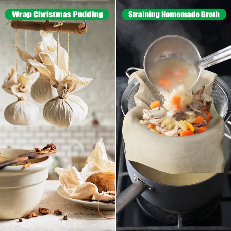 - Truly Chemical Free - Stuff poultry, wrap spices, craft customized projects, even use as cheesecloth table runner, all without plastic. Unbleached Organic Cotton - Strain almond milk, cold brew coffee, juice, and any other foods without worrying.