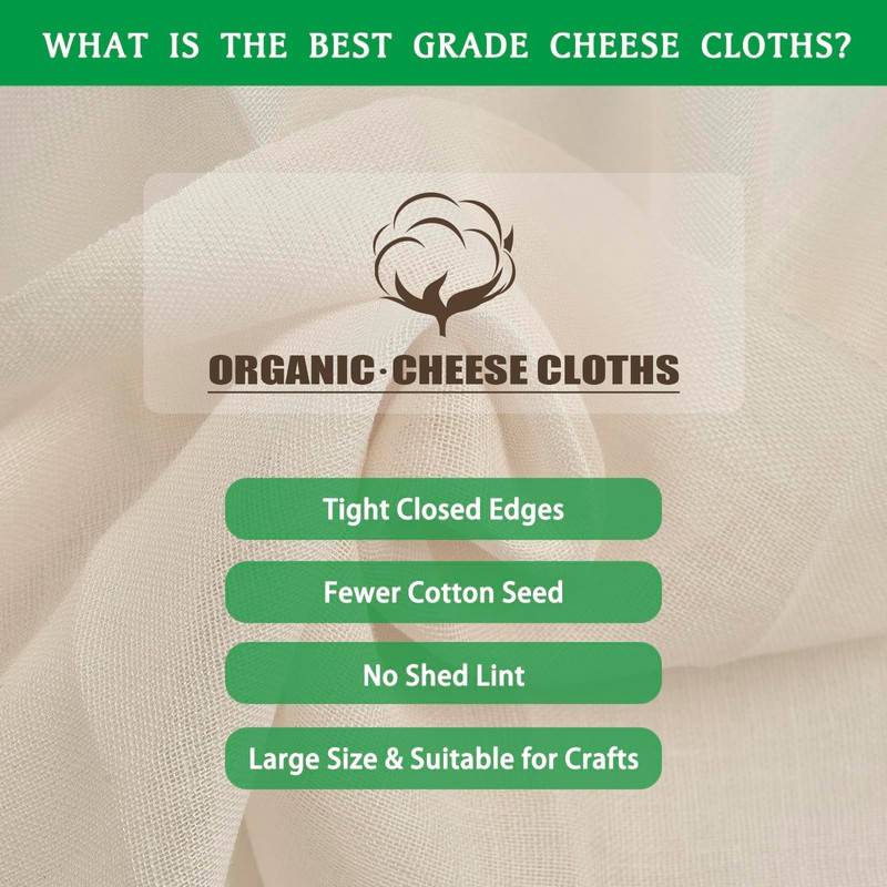 Organic Cheese Cloths, GOTS Certified, Grade 100, 18 Sq Feet,Reusable Cheese Cloth with Closed Edges Fabric Fine Mesh Cloth,Unbleached Cotton Muslin Cheesecloth for Straining, Juicing,Crafts - 2 Yards