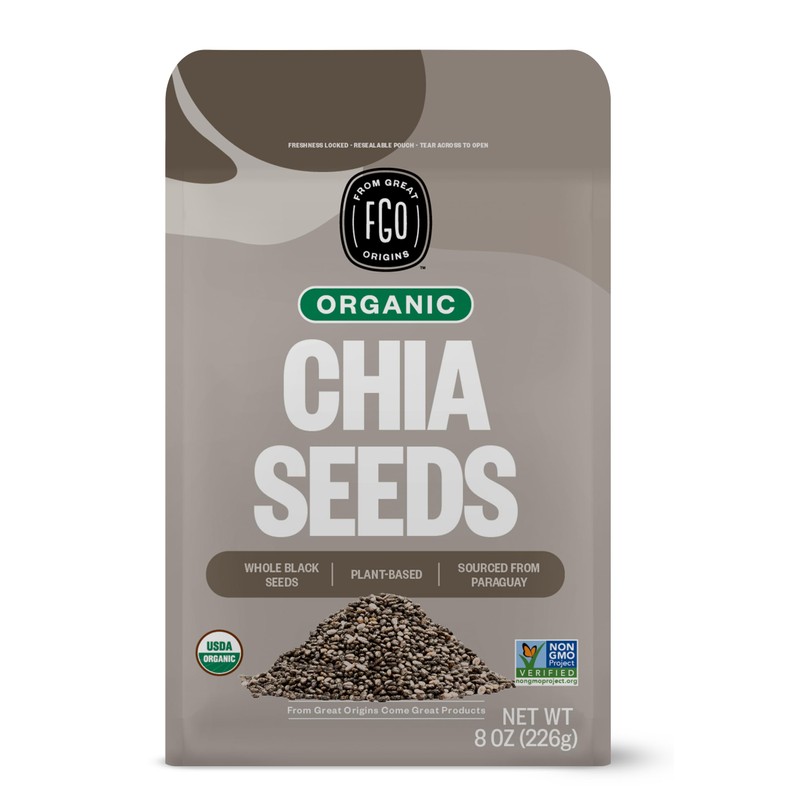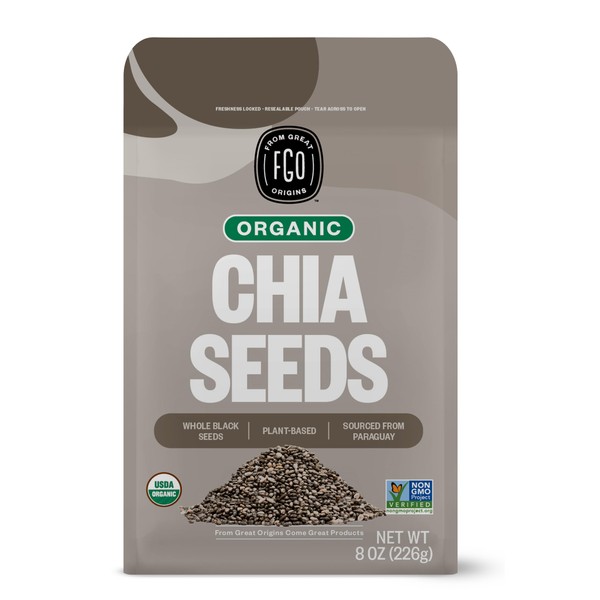FGO Organic Chia Seeds, 8oz, Natural Raw Black Chia Seeds from Paraguay, Plant-Based, Non-GMO, Vegan, Gluten-Free, Gels Easily, Superfood, Packaging May Vary (Pack of 1)