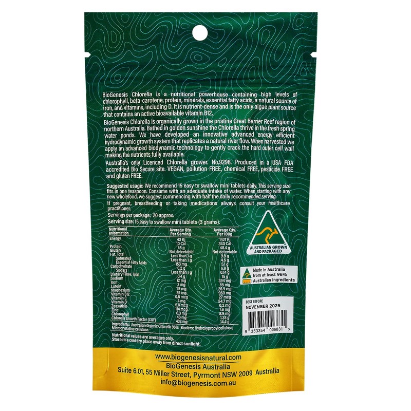 Organic Chlorella Mini Tablets, Australian | Advanced BioDynamic Cracked Cell Wall | Chlorophyll-Rich, Vitamins, Minerals, Chlorella Growth Factor | Supports Good Health | Vegan Mini Tablets (200 mg)