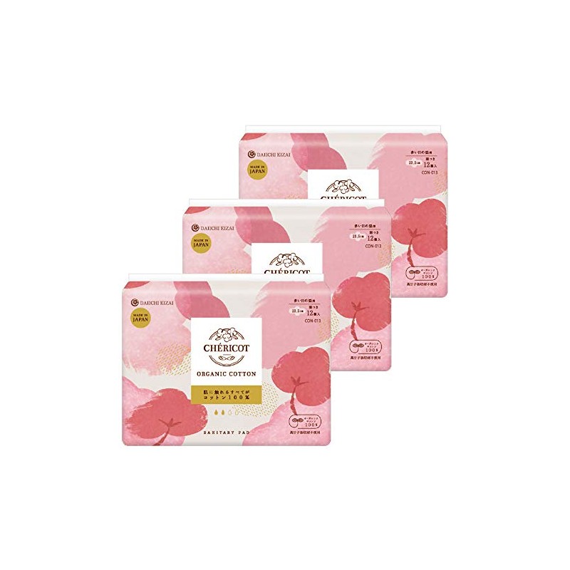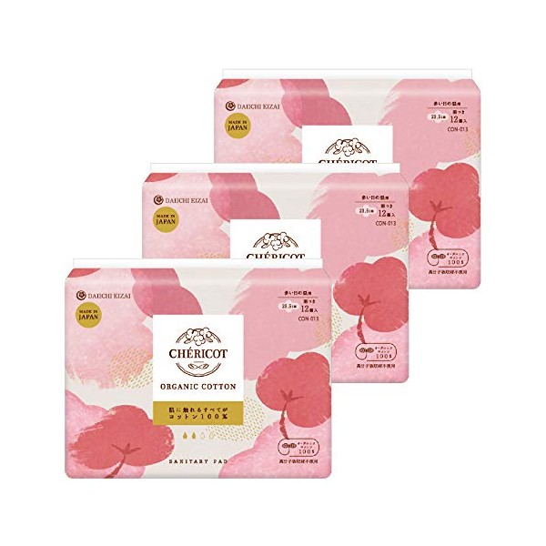 Organic Cotton 9.3 inches (23.5 cm), With Wings, For Heavy Days, 12 Sheets x 3 Sets