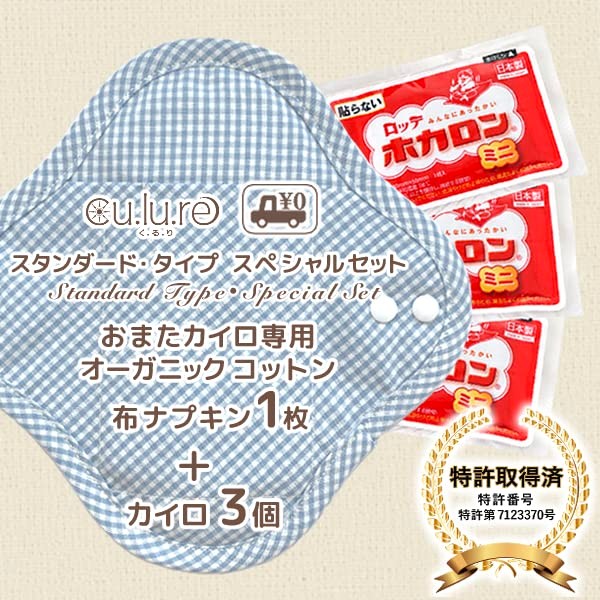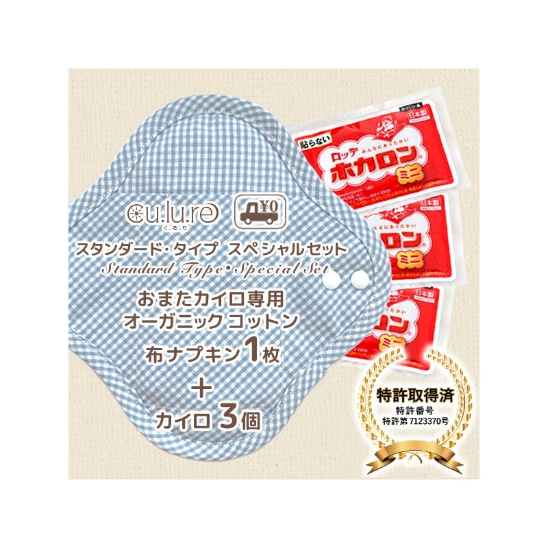 Organic Cotton Cloth Napkins for Warmers (First Trial Set) Standard Type/Checkered Blue + 3 Warmers Included