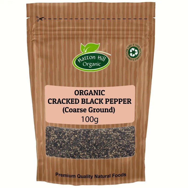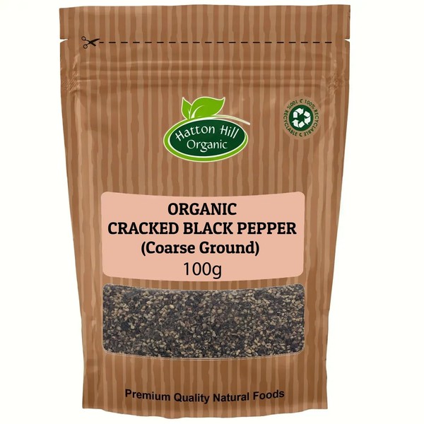 Organic Cracked Black Pepper (Coarse Ground) 100g by Hatton Hill Organic