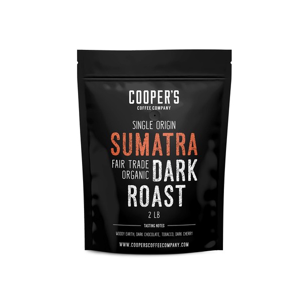 - Organic Sumatra Coffee, Whole Bean Dark Roast, 2 lb: A dark roast with an amazing taste profile! Cooper's Cask Coffee is a USDA Certified Roasting Company.