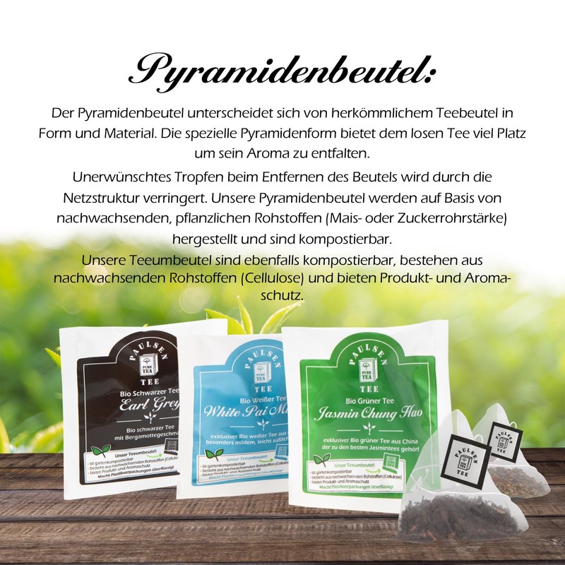 - Our Earl Grey tea in a pyramid bag is aroma-protected individually enveloped