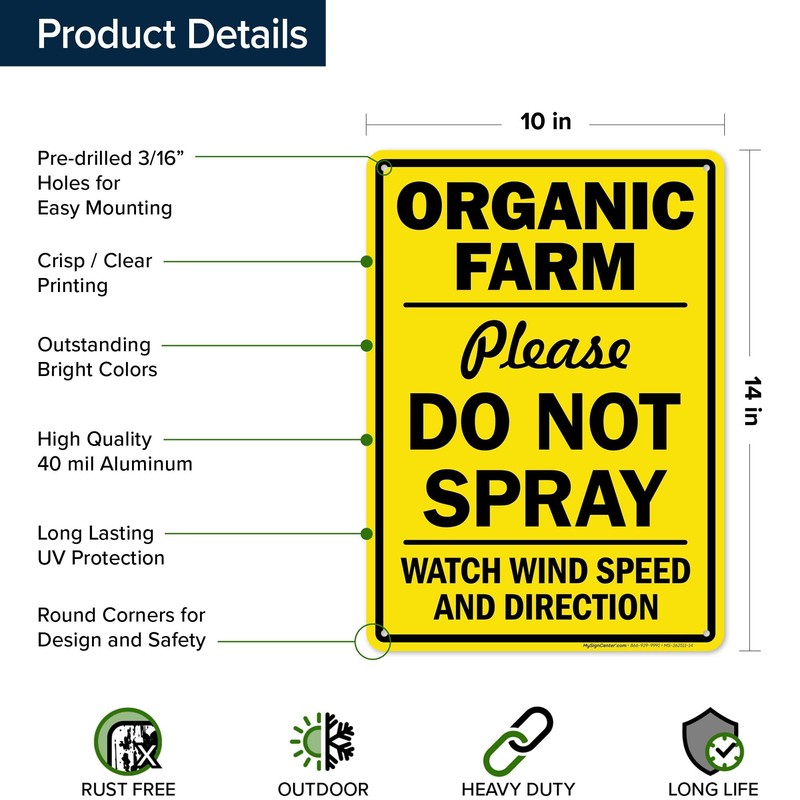 Organic Farm Please Do Not Spray Watch Wind Speed And Direction Sign, 10x14 Inches, Rust Free .040 Aluminum, Fade Resistant, Made in USA by My Sign Center