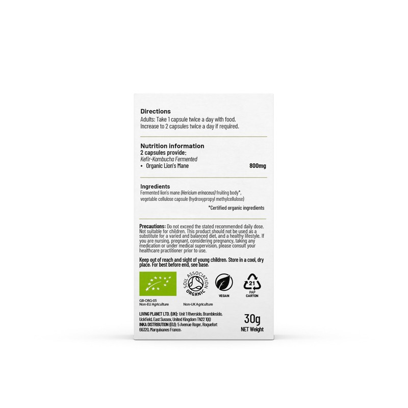 - Each capsule contains organic lion’s mane fermented for an extended period with our signature kefir-kombucha process, then carefully freeze dried to preserve all the unique nutrients. We then encapsulate it in an organic fermented tapioca capsule, making it uniquely 100% organic inside and out.