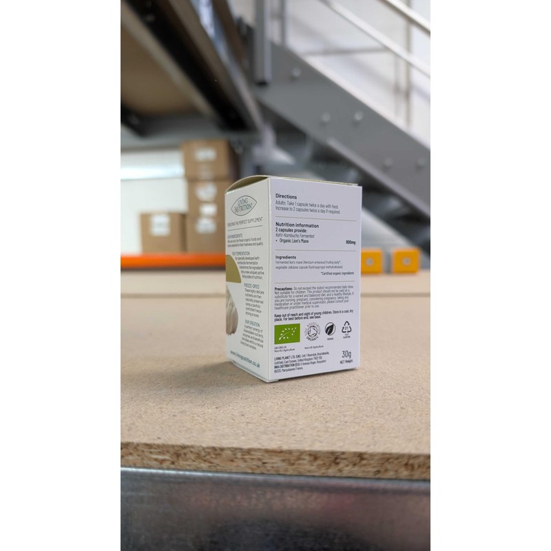 - Living Nutrition’s Organic Fermented Lion’s Mane capsules contain nutrients, enzymes, and active compounds to produce a complete living food that supports cognition and mood.