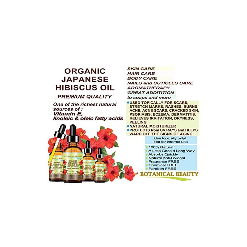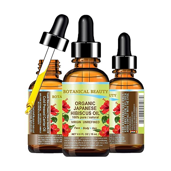 Organic HIBISCUS OIL (Hibiscus Sabdariffa) JAPANESE 100 Pure Natural VIRGIN UNREFINED COLD PRESSED Anti Aging, Vitamin E oil for FACE, SKIN, HAIR GROWTH 0.5 Fl.oz.- 15 ml by Botanical Beauty