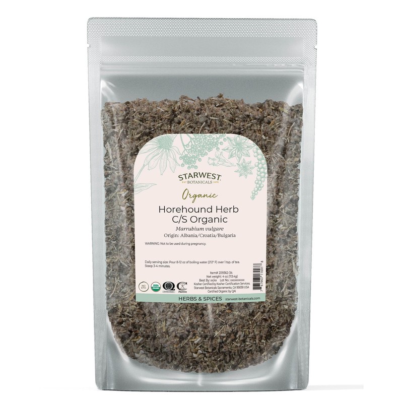 Starwest Botanicals Organic Horehound Herb - Dried White Horehound for Tea, Syrup, & Natural Herbal Blends, Cut & Sifted, Certified Kosher, Non-GMO - 4 oz Pouch