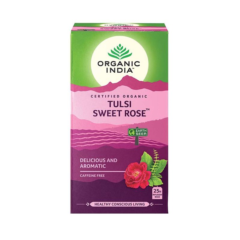 ORGANIC INDIA TULSI SWEET ROSE TEA, CAFFEINE FREE 25TEABAGS