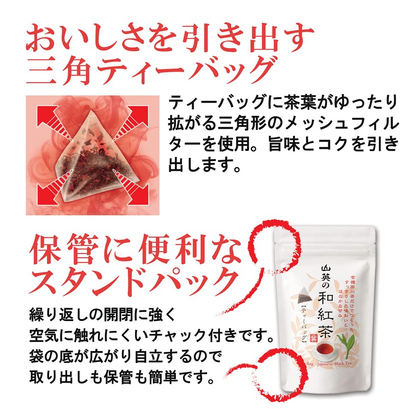 - A tea bag type that can be easily and conveniently enjoyed even in places without a teapot