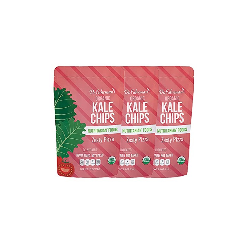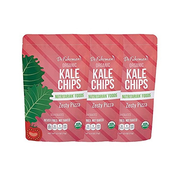 Dr. Fuhrman Organic Kale Chips Zesty Pizza | Oil-Free Vegan Snack | No Salt Added, Non-GMO, Plant-Based Healthy Chips | 3 Pack