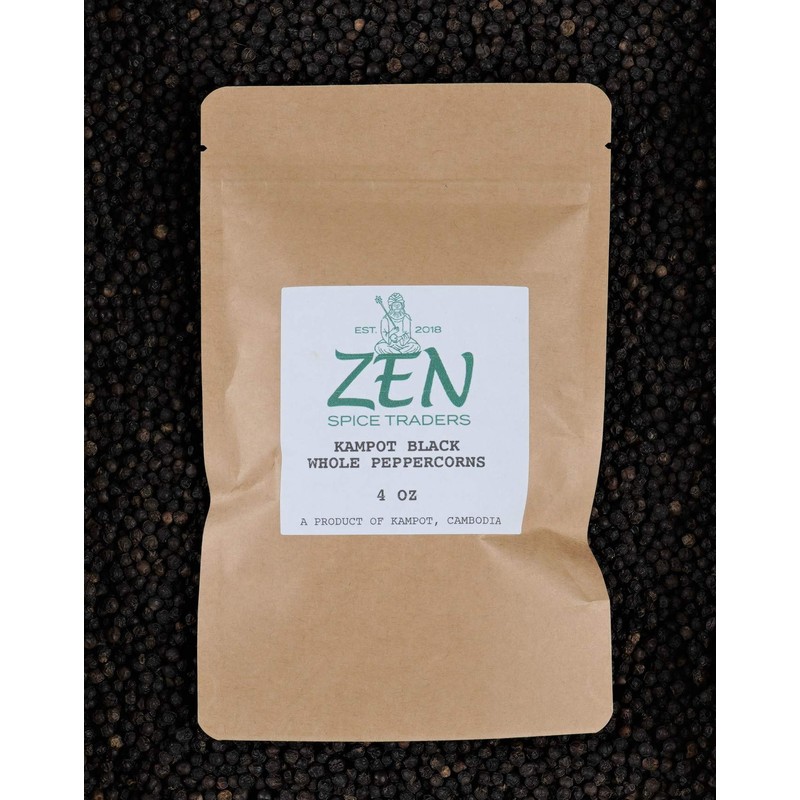Organic Kampot Black Peppercorns | Zen Spice Traders - Rare Cambodian Peppercorns | 4 ounces