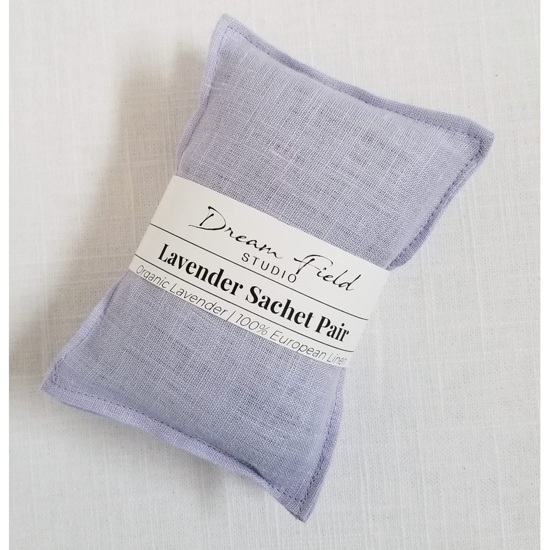 Organic Lavender Gift Set - Pair of Lavender Sachets, Drawer Freshener, Eco-friendly Flax Linen - Soft Lavender