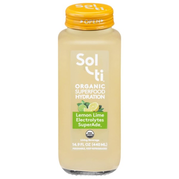 Organic Lemon Lime Electrolytes SuperAde Drink, Effective Hydration, SuperFood Lemonade by Sol-ti, Cold-Pressed Juice Blend, 16 Pack (14.9 Fl oz)