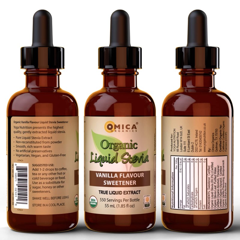 Organic Liquid Stevia Sweetener 60ml - Vanilla, Plain, Butterscotch, Peppermint or Lemon Flavour (Vanilla, 60ml x 1)