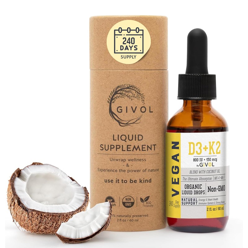 - ✅HIGHLY ABSORBABLE liquid mist form. Take 4 sprays once daily, every daily serving provides you with D3- 800IU, K2 as MK7- 40 Mcg and as MK4 - 110 Mcg dose. Mild Coconut Oil Flavor, Organic, Fractionated Coconut Carrier oil, certified Kosher.